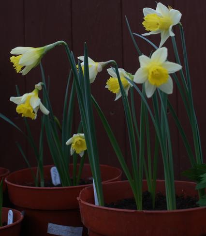 Narcissus pseudonarcissus f. lobularis Narcissus lobularis is not a recognised name in many arrangements of the species of Narcissus including the one used here. However it is a name which often appears in adverts for bulbs. It has been suggested as a synonym for several subspecies of Narcissus pseudonarcissus. The vendor of the bulbs shown below said that it is "the original wild daffodil of which Shakespeare wrote in a 'A Winters Tale', Daffodils, That come before the swallow dares, and take The winds of March with beauty.". It looks similar to Narcissus pseudonarcissus ssp. pseudonarcissus but is smaller - 15 cm against 45 cm. Photos by David Pilling of plants in 8" pots.