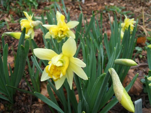Double forms of Narcissus pseudonarcissus have been treasured by gardeners for centuries. John Gerarde's (author of The Herball, or Generall Historie of Plantes 1597) form dates back to the early 17th century. It has been speculated (by Pugsley) that the occurrence of doubles in an area is a signal of previous cultivation of Narcissus there. Photographs and names by Mark Brown.