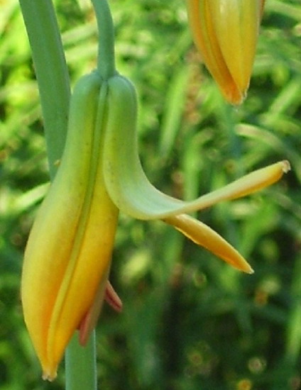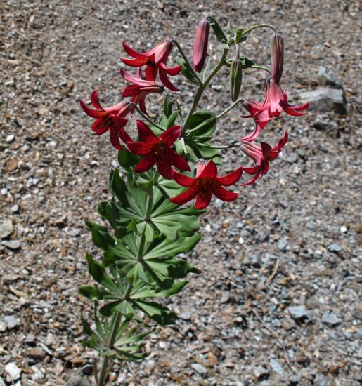 Lilium kelleyanum Lemmon from the southern Sierra Nevada Mountains, eastern side, 8-9500'. Height range: 2-3 ft. Photo 1 by John Longanecker. Photos 2-3 by Ron Parsons, wild population Fresno County California, early July 2006. Photo 4 of a bulb by Pontus Wallstén.