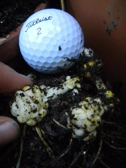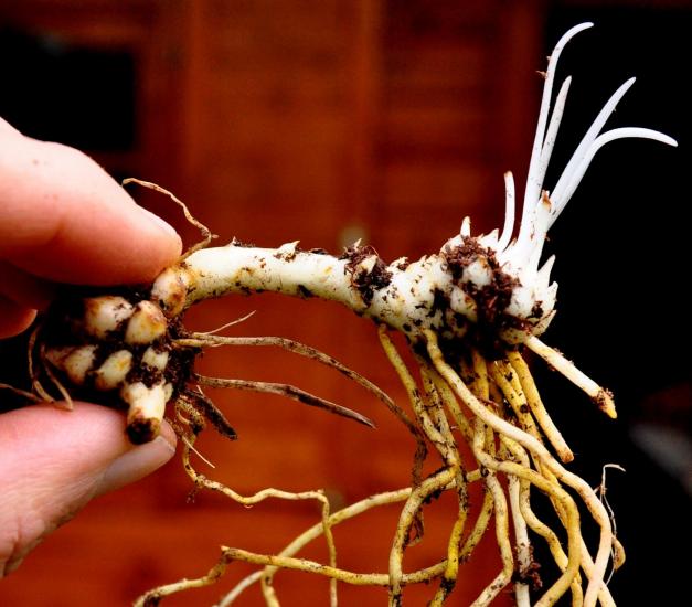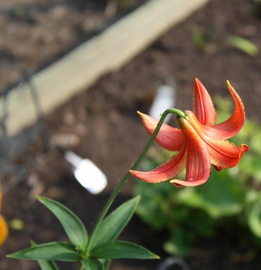 The first two photos by Paige Woodward who wrote "An example of Jim McKenney's generosity: In 2009 he gave me a young Lilium iridollae, a stoloniferous American lily that was scarcely in cultivation at the time. It descended from a wild collection by Bill McLaughlin, curator of plants at the US National Botanical Garden. The first photos is from April 2009, the second from July 2011. The last photo of a bulb was taken by Pontus Wallstén.