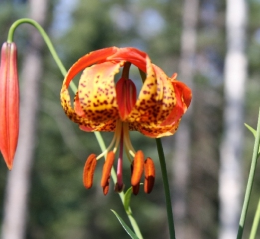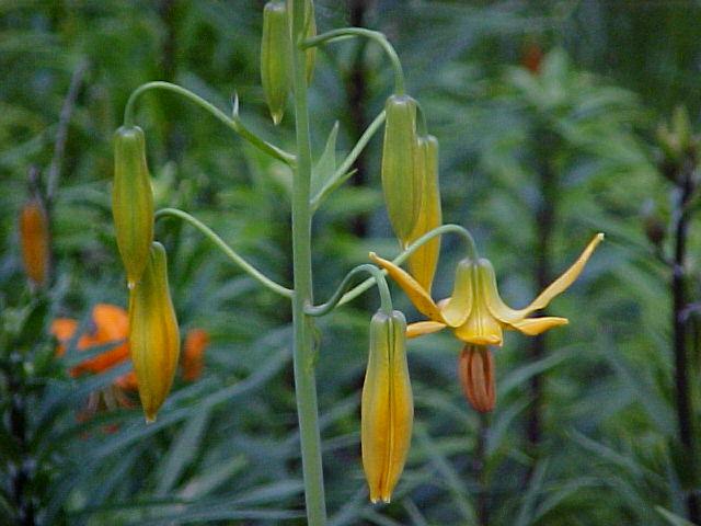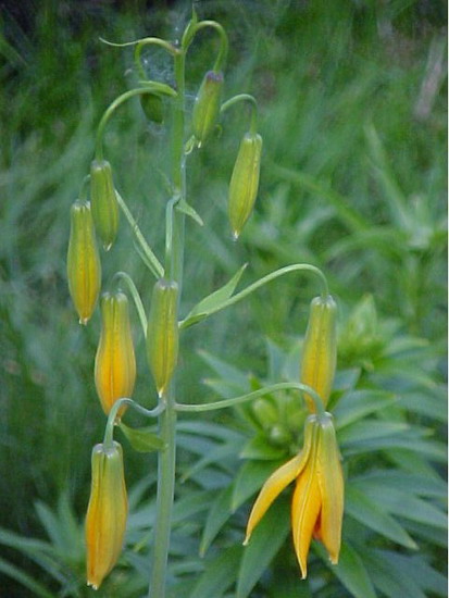This species grows into British Columbia, Canada, and continues north through the BC interior, with its last known site in BC being around Ft. Saint John. It also grows north of the last known BC site in the Yukon Territories on the Liard Plateau. The florets are held on arching pedicels in a raceme inflorescence. In Hay River there are stems that have produced up to eighteen florets. The foliage is set in whorls; some of them can be partial whorls. The colour varies from orange to light yellow. Nine photos of two colour forms submitted by Darm Crook.