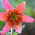 Lilium canadense var. coccineum (Pursh 1814) is a variety not recognized by all. Two views in photos 1 and 2 from Arnold Trachtenberg; reverse of tepals are alternate in appearance. Photos 3-5 submitted by Darm Crook. This variety has extreme colour variations, from almost pink, to light orange, crimson, dark orange plus bi-coloured reverse of orange and yellow, the spotting patterns have just as much variation, from almost nothing to very heavy. Photo 6 of a bulb Pontus Wallstén.
