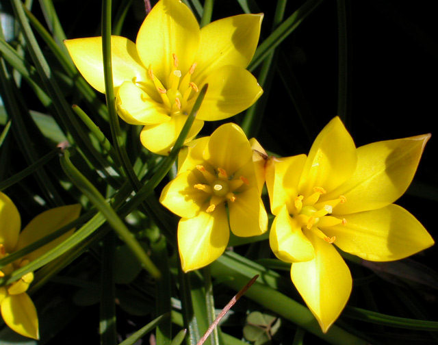 Nothoscordum felipponei Beauverd is native to Argentina and Uruguay. Plants of the World online lists 12 synonyms including Nothoscordum ostenii Beauverd, Ipheion sellowianum(Kunth) Traub, Beauverdia sellowiana(Kunth) Herter, and Tristagma sellowianum (Kunth) Traub. Whatever the name, it's a cheerful little plant that's easy to grow in a pot in Mediterranean conditions. The plant most of us grow is from South America where it is found in clay soil, that is slightly acidic and rich in organic matter in an area with rainfall for most of the year with a brief dry period in late summer. It is lemon yellow with 6 tepals. Height: about 3-10 cm. The first three photos were by Sheila Burrow and John Lonsdale. The last three photos were taken by Mary Sue Ittner and include the bulbs on a 1 cm grid.