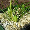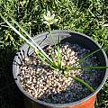 Nothoscordum montevidense Beauverd is from Argentina, Brazil, and Uruguay. The first photo is from Mark McDonough who writes: this is "a wonderful small plant that flowers up a storm both in spring and again in fall and early winter. The stems only reach a few inches in height (about 10 cm). As it is not hardy in my USDA Zone 5 garden in northern New England (Massachusetts), I take the potted plants inside over winter. The sunny yellow globlets have a nice lemony scent." The second and third photos are from John Lonsdale. The last three photos were taken by Mary Sue Ittner including the bulbs on a 1 cm grid. After years of growing this successfully in her unheated greenhouse and enjoying flowers twice a year, in 2023 something ate the leaves and flowers (and only that plant and no other). She moved it outside where it recovered.