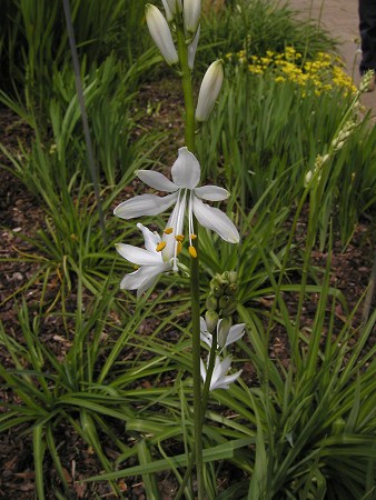 Paradisea lusitanica (Cout.) Samp. is a native to the mountains of Portugal and is taller with smaller flowers than Paradisea liliastrum. Height range: to about 4 ft. These pictures were taken in Wisley Gardens in the UK in May 2004 by Bob Rutemoeller.