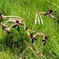 Pelargonium reflexum Pers. is a tuberous species from the western side of South Africa, from the Bokkeveld escarpment around Nieuwoudtville. It occurs in fynbos on sandy flats or rocky areas. The flowers are white with the upper two having wine red feathering. Flowering takes place from December to January. The name refers to the fact that many parts of the plant are reflexed, including petals, stigma and posterior stamen. (Section Hoarea, Pinnatum Group). The first four photos from iNaturalist were taken by Douglas Euston-Brown in the Northern Cape in August and shared under a CC BY-SA license. The last photo from David Victor may be this species.