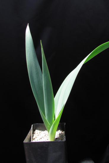 The photos below were taken by Nhu Nguyen of the progression of seedlings. Photo 1 shows germinating seeds. Photo 2 shows the seedlings after a few months old. Photo 3 shows the small bulb that started forming. Photos 5-6 show a four-year-old seedling. Perhaps in the California sun it will flower in less than 21 years!
