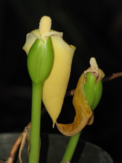 Remusatia Schott is a genus of seasonally dormant, tuberous epiphytes or lithophytes in the aroid family (Araceae). Four species are recognized: three from the Himalaya to Taiwan, and a fourth (Remusatia vivipara) widespread in tropical and subtropical Africa and Asia, extending through Malesia to NE Australia. The modern circumscription of Remusatia includes species formerly comprising the genus Gonatanthus. Distinctive characteristics of this genus include heart-shaped, peltate leaf blades and specialized stems bearing burr-like bulbils. These propagules are probably an example of zoochory and may be more significant than seed dispersal for the wide geographical range of Remusatia vivipara, which is reported to be shy to bloom in nature.