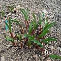 Allium hymenorrhizum Ledeb. "robust form" - I've grown several forms of this species, but this one from Jerry Flintoff is by far the most robust and distinctive. It grows 3' to 3-1/2' tall (90-105 cm) and has lollipop balls of lilac-pink blooms in early summer. The first photo shows a flower head with buds ready to open, the second shows flowers at full anthesis, and the third shows the succulent sprouting shoots in late March to early April, the leaf bases stained beet red and the emerging leaves strongly falcate. Photos by Mark McDonough.