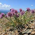 Allium pumilum Vved. is a rhizomatous alpine species native to the Mongolian Altai region in Central Asia. The plants grow at an altitude of around 2800 m in dry tundras and in alpine grasslands in the upper part of alpine belt. It is very similar to Allium amphibolum Lebeb., but differs in having curved instead of straight leaves. Height range: 20-30 cm. Photo by Andrey Dedov in the Altai Mountains.