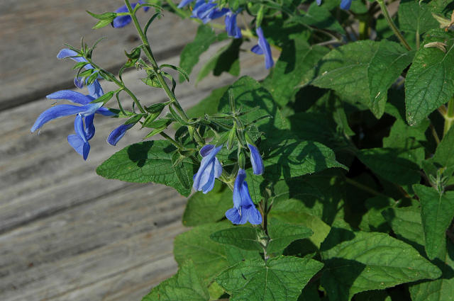 Salvia patens Cav. is native from Mexico to Guatemala. It is a summer growing, winter dormant species where the plant dies down to just the tubers underground. It is an easy species to grow and plants can be obtained from various sources. This plant needs regular watering in summer, good well-drained soil, and good sun to thrive. Plants can grow to 1 meter tall. In the winter it is recommended to let the soil dry out a little but not become bone dry. Tubers will come into growth in the spring with flowers starting a month or so later. In areas with a lot of winter rainfall and little summer water and poor soils such as Mary Sue Ittner's Northern California garden, it has not thrived as well planted in the ground as when grown in a large pot where moisture and soil can be controlled. But it has not died. This plant can be grown from seeds and will bloom in the same season if treated properly. Photos 1-2 from Mary Sue Ittner and photos 3-4 from Nhu Nguyen.