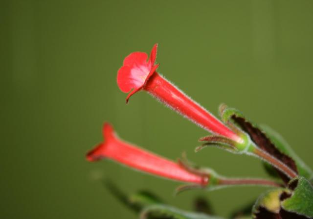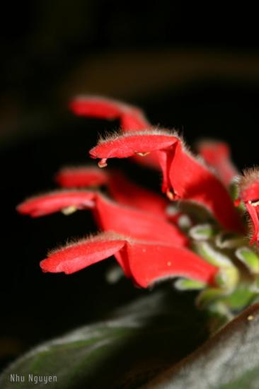 Sinningia gesneriifolia (Hanst.) Clayberg is native to Rio de Janeiro State, Brazil. It is one of the few non-tuberous species in the genus. It prefers partly sunny (or light shade) growth conditions. The plant can be quite large, growing to 1 m (3 ft) tall. The photos below were taken by Nhu Nguyen.