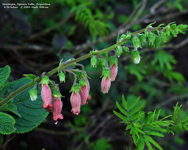 Sinningia sellovii (Mart.) Wiehler is distributed from Bolivia to Brazil and northeastern Argentina. Height range: 2-5 ft. The first two photos by John Ingram show the flowers and the three full plants in 5 and 7 gallon containers. The last photo is of the plant in the wild taken in October of 2003 at Iguazú Falls, Argentina, by Mark Wilcox.