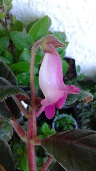 Sinningia aggregata (Ker Gawl.) Wiehler is native to Brazil. Joseph Theunissen photographed it and reported: "During a trip through Brasil I found between Santos and São Paulo a Sinningia with long upstanding branches. The leaves are like velvet and when you rub a leaf it smells like citron." Members of the gersneriphiles list identify this as S. aggregata. It has a range of flower colors and a habit closely resembling that in the picture. Its leaves are often fragrant, although one source characterizes the texture as "sticky", not velvet. The geographical range of Sinningia aggregata includes Paraná, Santa Catarina, and São Paulo states in Brazil (information courtesy of Gesneriad World Checklist). The lemony fragrance is also characteristic. Height: to about 30 cm.