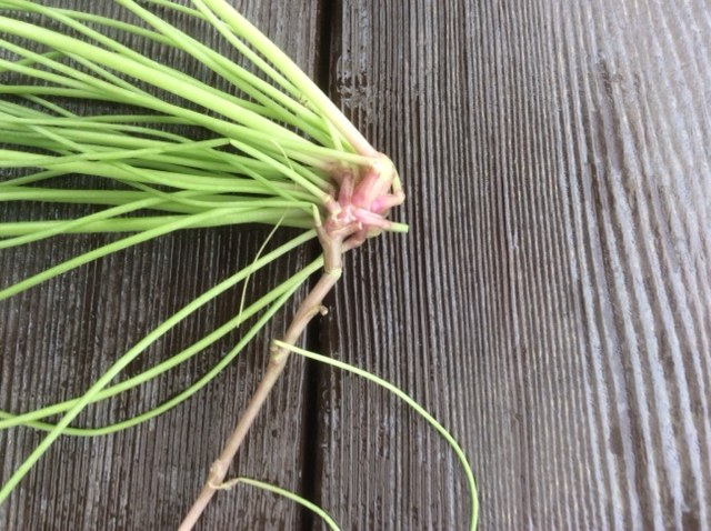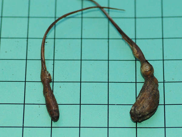 Jim Waddick writes "Here's a plant of Oxalis compressa with large double flowers, but what is going on here? The flowers are part of a good size clump of leaves, but then there is a near leafless stem going down almost a foot to end in a tiny corm barely under the soil. Unfortunately a greenhouse weed. Notice that the clump of foliage is NOT resting on the ground and has no hint of roots. Also note the picture of the tiny tuber. The tuber is attached to the main stem and there is a small bud just starting to develop where the tuber meets the stem. A lot of odd structures here." Jim's photos were discussed on the PBS list. Kipp McMichael explained that the plant Jim uprooted was a sprout of the bulb he pulled out. It produces a root-like shoot that grows to the surface and puts down roots with new bulbs forming along the roots. If you try to pull it out, the smaller bulbs are often left in place and appear the following year. This is shown more clearly in the photos on the Oxalis pes-caprae wiki page. This is a feature which makes this oxalis invasive and difficult to eradicate. Photos from Jim Waddick.
