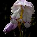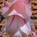 Gladiolus mortonius Herb. (formerly Gladiolus ochroleucus var. macowanii (Baker) Oberm.) is a summer rainfall Eastern Cape species that grows in open stony grassland. Although it resembles Gladiolus ochroleucus, it has a longer tube (30 to 45 mm versus 15-20 mm) and more strongly thickened midrib and leaf margins. The long-tubed pink flowers face to one side and have reddish streaks on the lower tepals. It is a gorgeous little gladiolus that grows successfully in a pot, producing flower stems around 8-9 inches (20-25 cm) tall, with comparatively large flowers that face slightly downwards. The photo (face) is taken upwards into the flower to show detail. The first three photos by Paul Tyerman show plants that have had a succession of flowers from late February (in Australia) and with a new spike in mid April just as the last of the previous flowers faded.