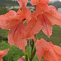 A shorter-stemmed form with salmon colored flowers was described as Gladiolus salmoneus Baker and later considered to be Gladiolus oppositiflorus ssp. salmoneus (Baker) Oberm. Although this subspecies is still recognized by Kew, Goldblatt and Manning in Gladiolus of Southern Africa did not think the differences warranted subspecies treatment. The first two photos of this form taken in the Eastern Cape January 2008 by Cameron McMaster. The last photo is from Rachel Saunders.