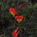 Gladiolus overbergensis Goldblatt & M.P.de Vos is a rare species found in the southern part of the southwestern Cape. Growing from 35 to 50 cm high, it is reported to be found in sandy loam and fynbos or fynbos-renosterveld, flowering July-September. Flowers are bright red to orange with a long perianth tube which could make them adapted for pollination by sunbirds. Past names include Antholyza guthriei L.Bolus and Homoglossum guthriei (L.Bolus) L.Bolus. Photo from iNaturalist taken by Lindsay Lewis taken in the Overberg in June and shared under a CC BY-NC license.