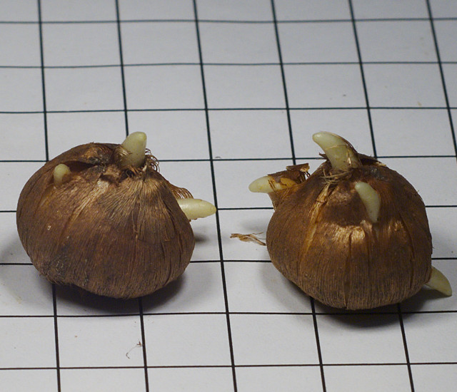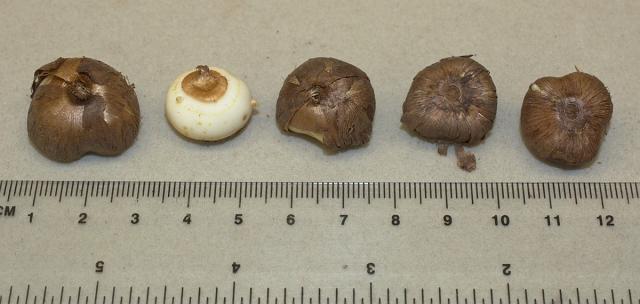 Crocus tommasinianus 'Yalta' is a Janis Ruksans cultivar. He described its history here and believes it to be a hybrid between Crocus tommasinianus and a Crocus vernus hybrid such as 'Vanguard'. Photographs by David Pilling with corms in photo 1 shown on a 10 mm grid.