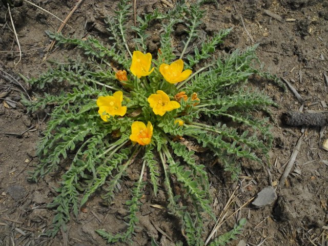 Taraxia tanacetifolia (Pursh) Rydb., syn. Oenothera tanacetifolia Torr. & A. Gray, Camissonia tanacetifolia (Torr. & A. Gray) P.H. Raven, is found in clay soils in open fields and moist slopes in Washington, Idaho, Nevada, and California from 700 to 2500 m. It is often found in large populations. Leaves are deeply pinnately-lobed, hairy, and the stigma exceeds the anthers. It flowers May to July. Height: about 10 cm. The first two photos were taken by Mary Sue Ittner near the Feather River, Plumas County. The next two photos were taken by Gary A. Monroe in May 2007 in Sierra County, California, and are included here under a Creative Commons Attribution-NonCommercial 3.0 license.