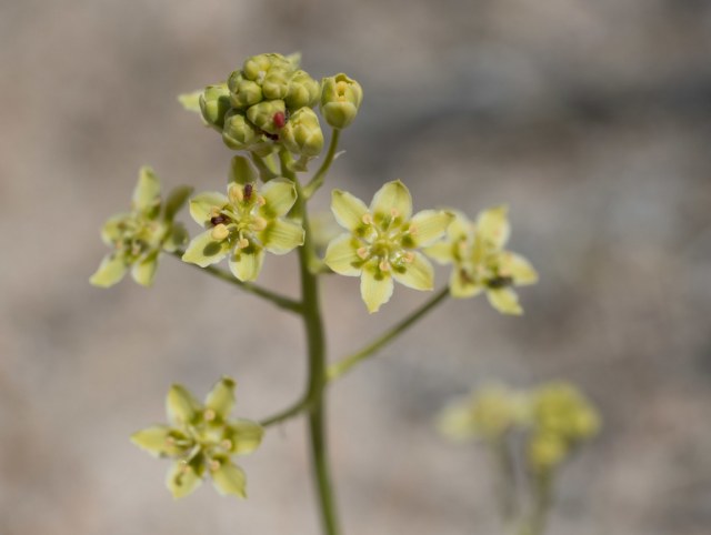 Toxicoscordion brevibracteatum (M.E.Jones) R.R.Gates (syn. Zigadenus brevibracteatus (M.E.Jones) H.M.Hall) is native to Baja California, Sonora, and California, where it grows in sandy desert habitat, giving it the name desert death camas. It grows to nearly two feet tall. The first two photos from Calflora were taken by Jonathon Holguin in April in Kern County and shared under a CC BY-NC license. The next two photos from iNaturalist taken by Stephanie Calloway in March in Los Angeles County and Tony Iwane in April and shared under a CC BY-NC license.