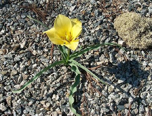 Tulipa bifloriformis Vved. grows wild on stony slopes in the foothills of the Tien Shan, where it can flower March to July. The photos were taken by Arnold Trachtenberg.