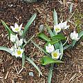 Another named species, Tulipa polychroma Stapf is considered by most authorities to be a synonym of Tulipa biflora Pall. It was found in Iran and Afghanistan. Mark McDonough supplied the first four photos and wrote this about it: "It is an excellent miniature species for the rock garden, with charming white "star cups" on 2-3" (5-7.5 cm) stems. The center of the flower is yolk yellow, but it's the outside of the flowers that give this species its character. The back of the outer 3 tepals are tinged matte olive-mauve, and the back of the 3 inner tepals are lightly striped with green and blue. The flowers are deliciously scented. The first three views show the flowers from above and the side to illustrate the outer tepal markings and the last at late anthesis, the outer tepals age to a pale ruddy rose color." The fifth photo is of wild plants taken by Gideon Pisanty. The last photo is a seed and seed pod photo by Ina Crossley.
