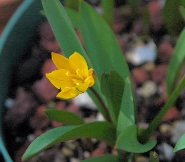 A species, Tulipa neustruevae Pobed., is now considered to be a synonym of Tulipa dasystemon. Found at a lower elevation in the western Tien Shan, it is a brighter golden yellow and has fresh glossy green leaves. It can be grown in a rock garden or raised bed and flowers March to April. Photo taken in a Portland, Oregon, garden March 2009 by Mary Sue Ittner.