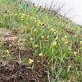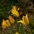 Tulipa heterophylla (Regel) Baker is distributed in Southern Kazakhstan, Kyrgyzstan, and northwestern China. Growing 5 to 12 cm tall, it has small yellow flowers stained green or purple on the outside and glabrous bulb tunics. It is in the subgenus Orithyia along with Tulipa heteropetala and Tulipa uniflora. Photos by David Victor taken where it was growing in the wild on the eastern Tien Shan mountains, Kazakhstan, in June 2004. The first two shots were taken near a redundant Russian space centre at some 11,000 feet, whilst the other two were taken in the Talgar Pass at roughly 9,000 feet. The second shot includes a lens hood for size comparison. They are small plants! The third shot clearly shows the density of plants on the mountain side.
