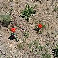 Tulipa greigii Regel is distributed from Iran to Central Asia. It grows 20 to 45 cm tall with gray green leaves striped and dotted with purple or brown and solitary widely cupped flowers usually red or yellow with a blackish yellow margined eye in the center. Photos by David Victor of plants growing in the wild on the western Tien Shan mountains, Kazakhstan, in June 2004. The photographs were taken in the Ulkun-Kyindi valley at roughly 9,000 feet. The plants were growing on a hot dry bank, above the other species tulips which were growing in the bottom of the valley. Greig's tulip was named in 1873 after Samuil Alexeevich Greig (1827-1887) who was a Russian General, Finance Minister, onetime President of the Russian Horticultural Society, and grandson of Admiral Samuel Greig (1735-1788, "Father of the Russian Navy") by Eduard August von Regel (1815-1892), director of the St Petersburg Botanical Garden (see Gartenflora 22: 290 (1873)). Some of the cultivars in the Greigii Group can be seen on our hybrid tulips page.