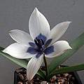 Tulipa humilis 'Alba Coerulea Oculata' is a cultivar (with a name often seen with different spellings including 'Albocaerulea-oculata', 'Albocoerulea Oculata', 'Albo-caerulea Occulata') that is white with a steel blue base. Jane McGary mentions it is said to have been collected (as a clone) in 1927, in mountainous northwestern Iran. Diana Everett, in 'The Genus Tulipa', writes that it is "best grown under glass." I suspect that is to give it a dry summer in England, Everett's home. It grew well outdoors in the foothills of the Cascade mountains, northwestern Oregon, with frequent frost and some winter snow. Photo 1 by Arnold Trachtenberg. Photos 2-3 by Ian Young.