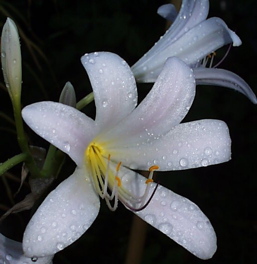 These photos by Jim Waddick show two different flowers that very closely resemble the common sterile triploid Lycoris squamigera, but there is no sign of blue tints in any part of the flower. All flowers on this stalk show this. It may be a similar hybrid. First seen in 2010, I have tried selfing it and crossing with typical Lycoris squamigera to see if it may produce seed one way or another.