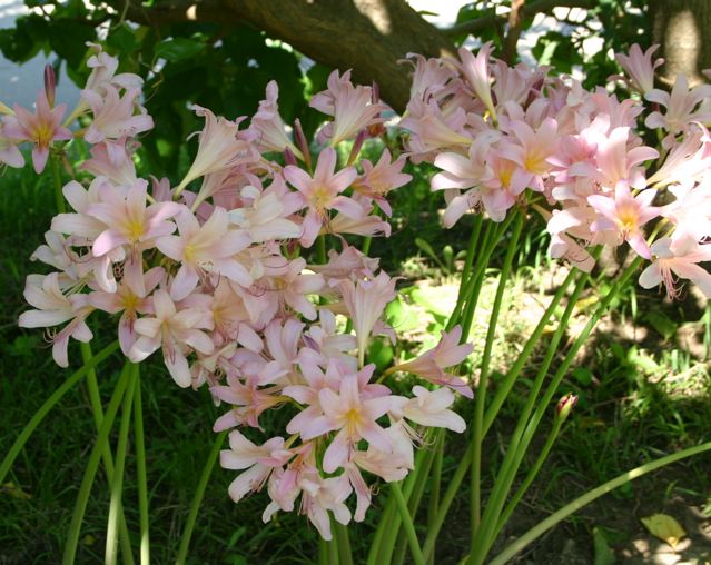 Many people confuse Lycoris squamigera and Amaryllis belladonna because both bloom in the fall on bare stalks with no leaves, and both can have large pink flowers. You can see the differences on the Amaryllis belladonna versus Lycoris squamigera page.
