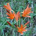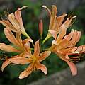 Lycoris chinensis Traub known as the Golden Surprise Lily has medium yellow to golden-orange spidery flowers with curved and ruffled petal edges. It is native to China and is a fully fertile seed producing diploid that readily hybridizes with Lycoris longituba. It is hardy to Zone 5 and vigorous. Height: about 70 cm. Photos by Arnold Trachtenberg, Jim Murrain, and Jim Waddick. The last two show the variation in color, with one a rich yellow spidery form with twisted petals and the second near orange color with the color extending to the stamens.