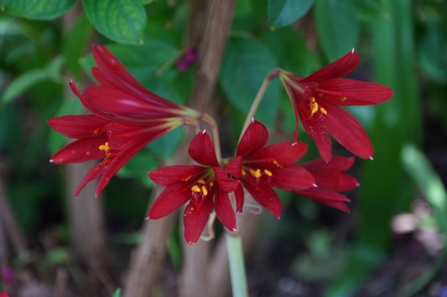 Rhodophiala phycelloides (Herb.) Hunz. (or Zephyranthes phycelloides (Herb.) Nic.García) is from the central Andes of Chile where it spends the winter under snow. It has 3 to 6 red almost tubular flowers with flared tips and exserted stigmas. Leaves appear with the flowers in spring. Height range: to about 30 cm. Photo 1 by Osmani Baullosa. Photo 2 was taken by Eugene Zielinski spring 2011 where it was blooming along Route 5 between Los Vilos and La Serena.
