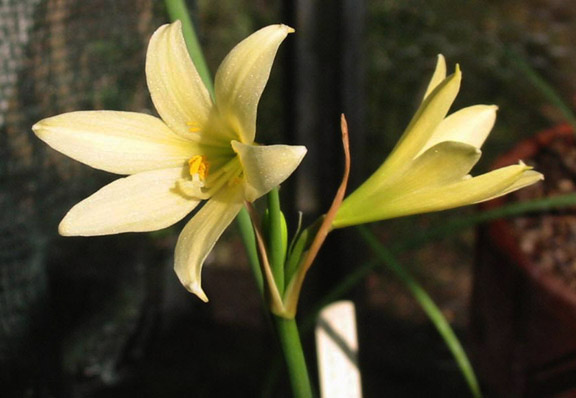Rhodophiala elwesii (C.H.Wright) Traub ( or Zephyranthes elwesii (C.H.Wright) Nic.García) from the Argentinean and Chilean Andes has yellow flowers. Photo by Den Wilson.