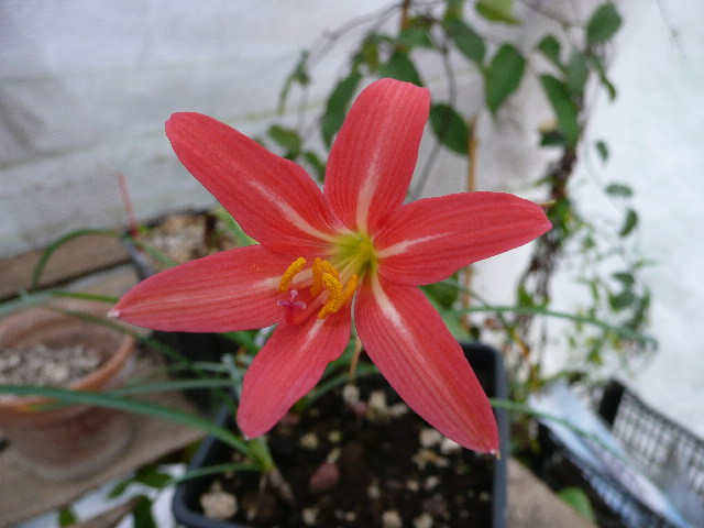Rhodophiala advena (Ker Gawl.) Traub (or Zephyranthes advena (Ker Gawl.) Nic.García) is an autumn winter spring growing species from Chile that blooms in late spring or summer. Flowers are warm crystalline colors ranging from pale orange to deep rose. Height range: 30-45 cm. Photo one is by Den Wilson of a red form. Photos two and three of two other color forms are by Osmani Baullosa. The final photo was taken by Mary Sue Ittner at Telos Rare Bulbs.